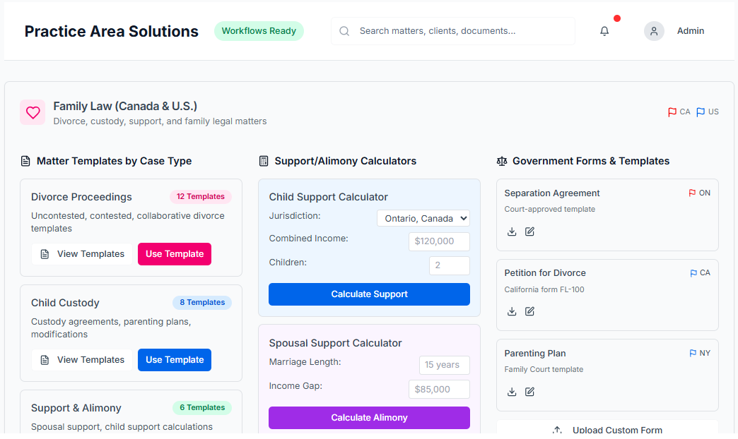 We’ve worked with family law consultants and legal experts to create templates aligned to Canadian provinces and U.S. state-level practices.