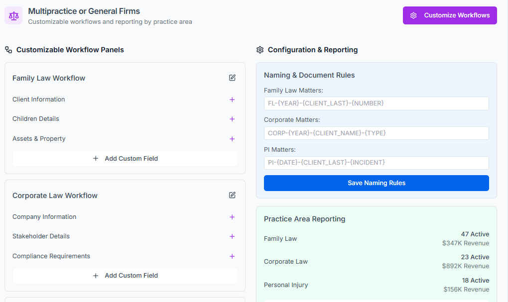 If your firm supports multiple practice areas, Oxygen lets you start with core templates and then adapt each workflow and document structure to match your specific focus areas.