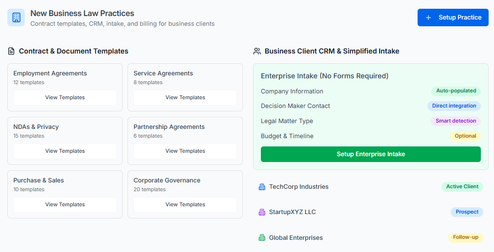 For startup firms in corporate and business law, we offer pre-configured templates that reduce the time, cost, and risk of starting from scratch.