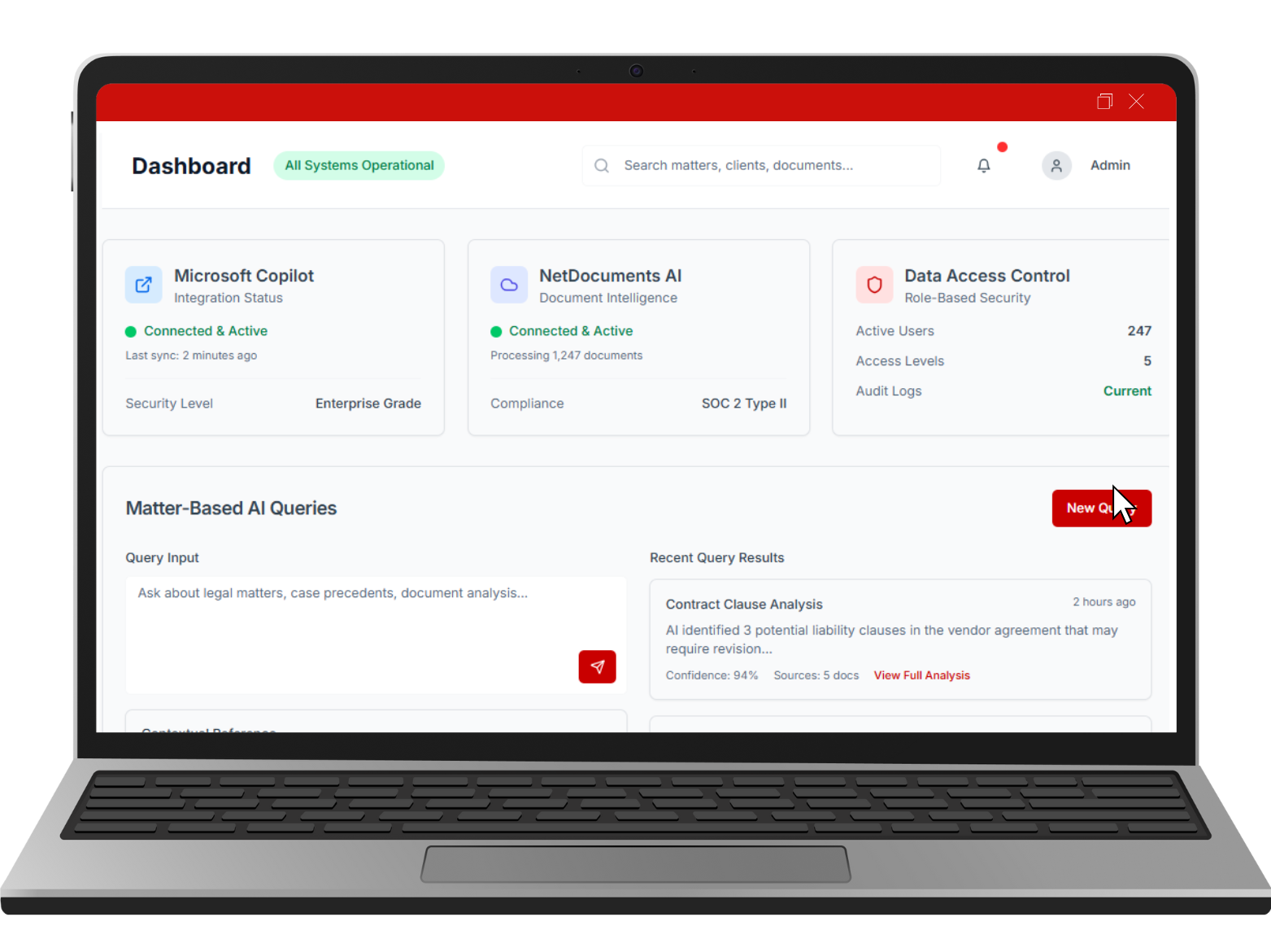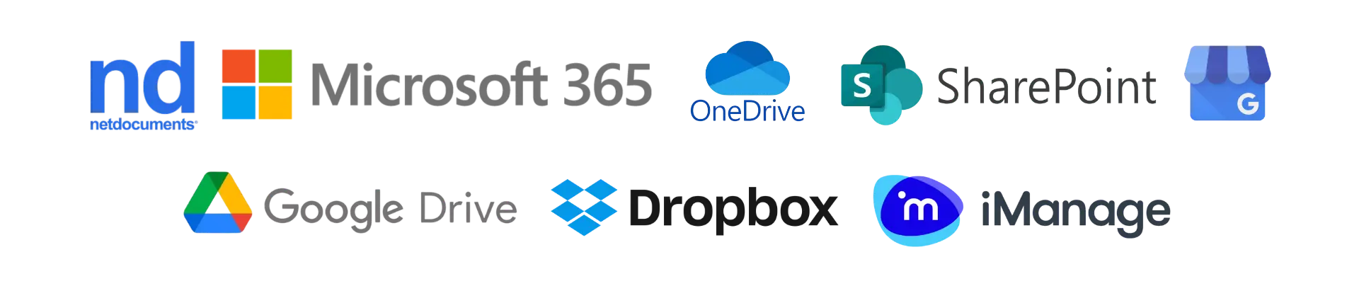 Connects to NetDocuments, Microsoft 365, QuickBooks, and more.