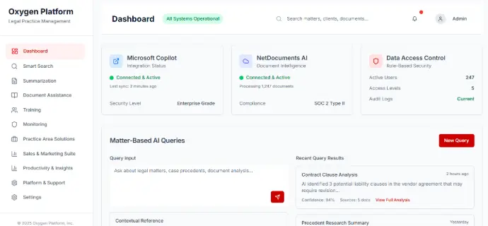 Oxygen centralizes matters, documents, billing, intake, deadlines, and client communications in one connected workflow.